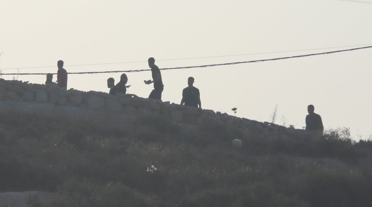 Arab mob throwing rocks at Jewish hikers near Ofra; Photo credit: Ze’ev Rothkopf